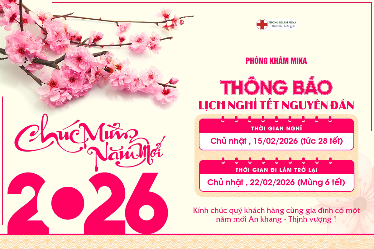 24/05/2025Thông báo nghỉ làm việc Kính gửi Quý khách hàng, Vì lý do chủ nhà cần mặt tiền để tổ chức giỗ, nên phòng khám Mika xin phép được nghỉ làm 01 ngày thứ 3 (27/05/2025) Rất mong Quý khách hàng cảm thông cho Phòng khám vì sự bất tiện này. Bác sĩ Cương....